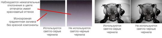 - Симметричное расположение цветовых каналов CMYKKYMC позволяет избежать эффекта «матрас», характерного для режима двунаправленной печати bi-directional