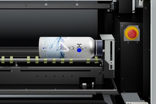 Благодаря режиму дистанционной печати бутылки и фляжки можно легко персонализировать большими партиями или добавить дополнительный вращающийся печатный блок, позволяющий пользователям выполнять печать по всему цилиндру.