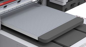 Рабочий стол принтера выполнен из высокопрочного авиационного алюминия и имеет одну зону вакуумного прижима. За прижим материала отвечают шесть турбинных вентиляторов.